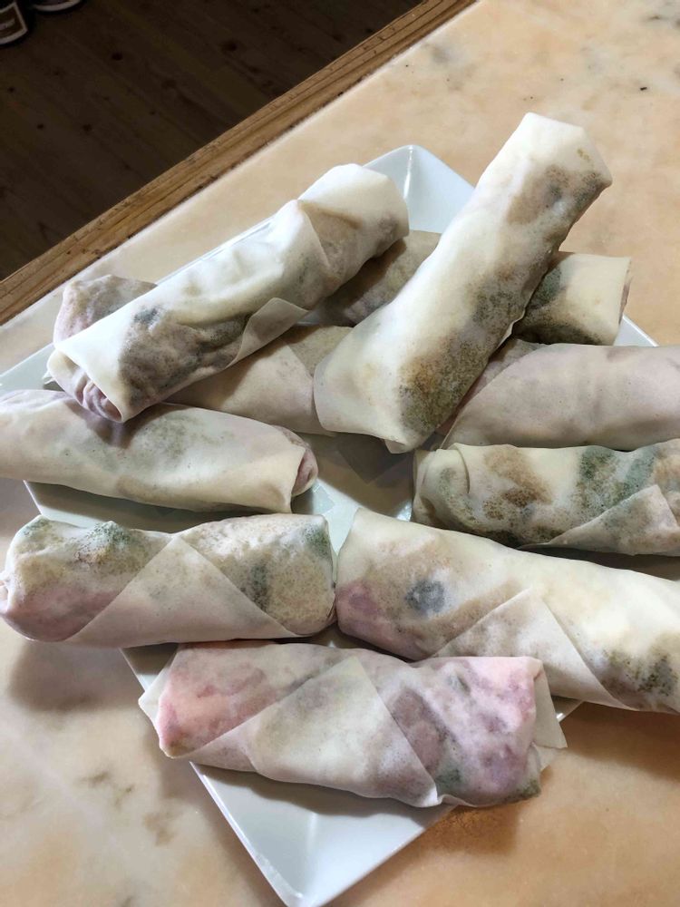すえすえさんのポテサラ、,春巻き、筍、ピーマン、豚肉,鰯蒲焼丼の投稿画像