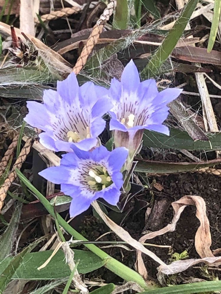 2週間前に芝刈りした後に生えてきた筆リンドウです、小さな花ですが良く見ると綺麗だな〜!。