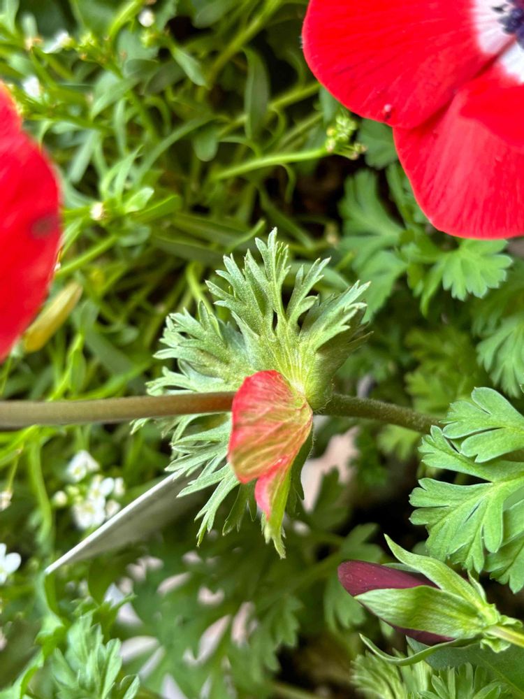 ③枚目はアネモネの🌸の下の葉っぱ🌱🌱が一部花びらの様になっています。④枚目は元気一杯のフクシア😀。