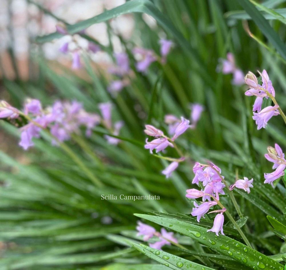 (シラーカンパニュラータ)が沢山咲きました💗風でなびき倒れていますが、お日様が当たればまた起きてくれそうです🌿