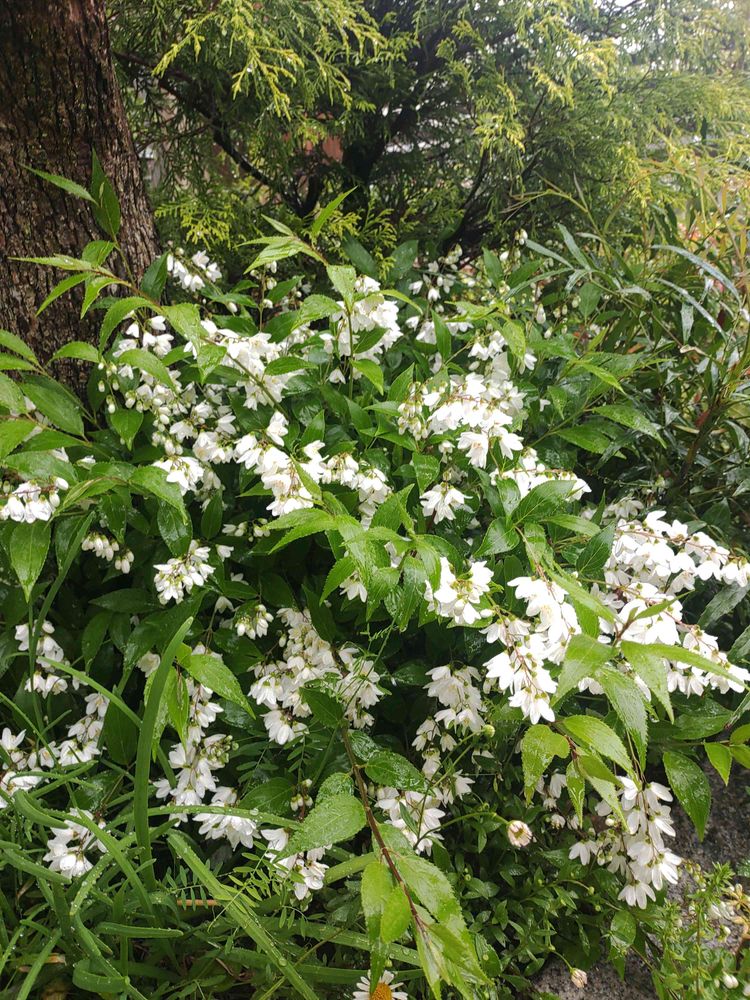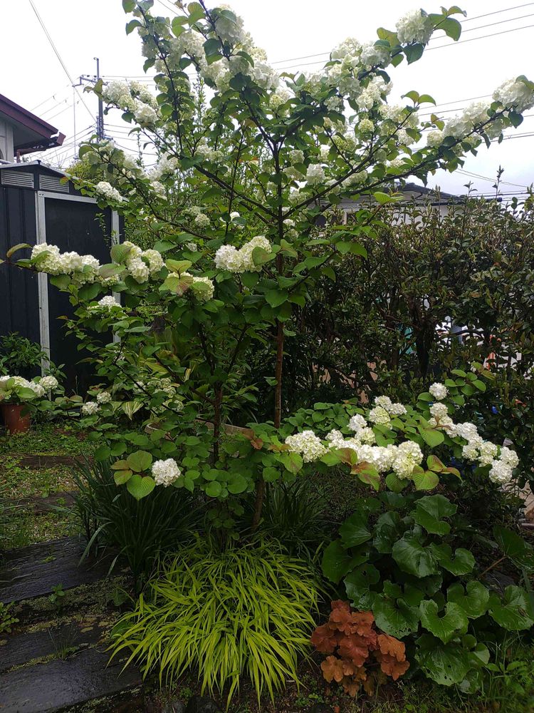 オオデマリが見頃!下草の黄金フウチソウとヒューケラキャラメルとツワブキもお気に入り😍
