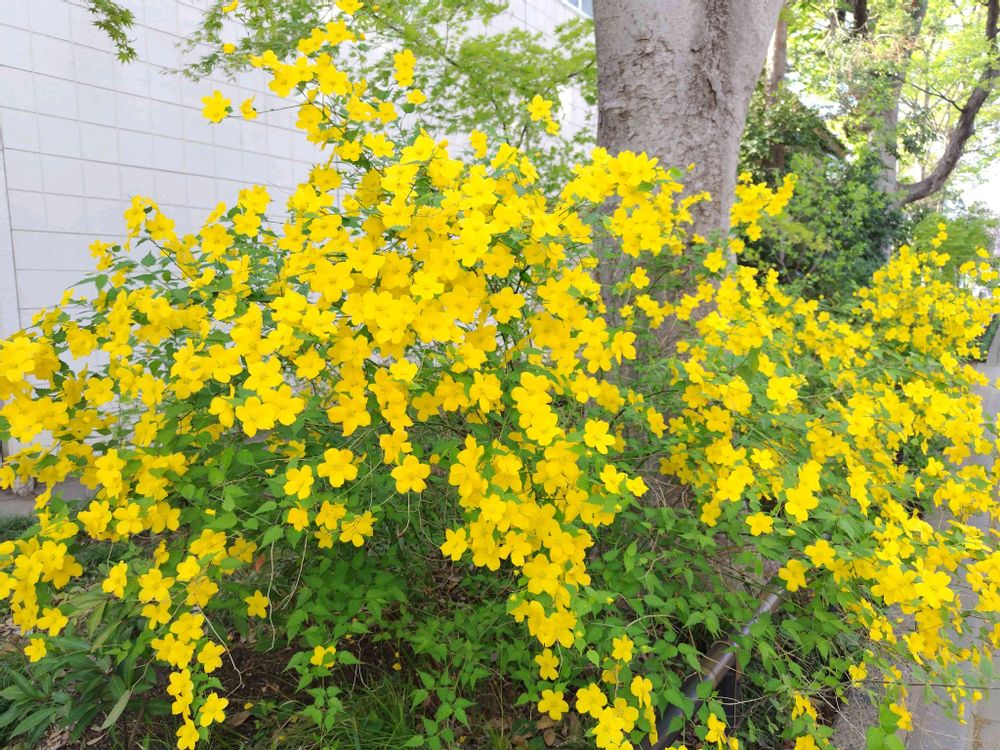 しなやかなヤマブキがそよ風にヒラヒラゆれるとまるでたくさんの小さな蝶🦋が舞ってるようでした🎶