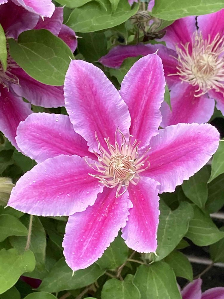 でも、誘引が上手にできてなくて隣の別色のクレマチスと絡みあってしまってます😣