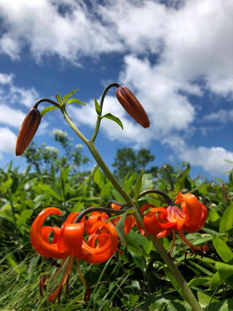 クルマユリがたくさん咲いている今日の群馬県野反湖。平地より10℃程涼しいなか湖畔を一周トレッキング😊天気も良く、テレビ放映もあり、いつもはガーラガラなのに、それこそ猫も杓子も!過去最高の人出でした😅 7/14