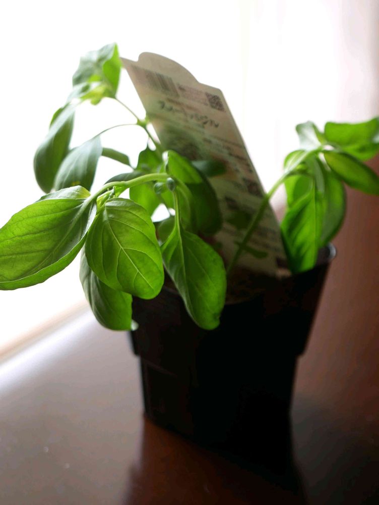 今まで、普通の「スイートバジル」は育てていましたが、今回のトッピングバジルは、ご覧の通り葉が小さくて、バジルソースにも使えそうなので、モニターにチャレンジ、当選しました\(^o^)/
