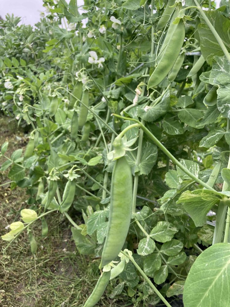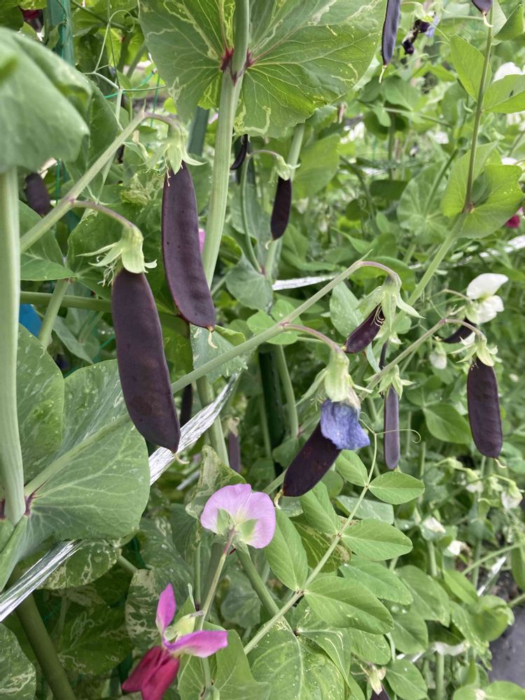 スナップえんどうは絶賛収穫中、実えんどうのツタンカーメンと白竜はもうしばらくかかりそうです。