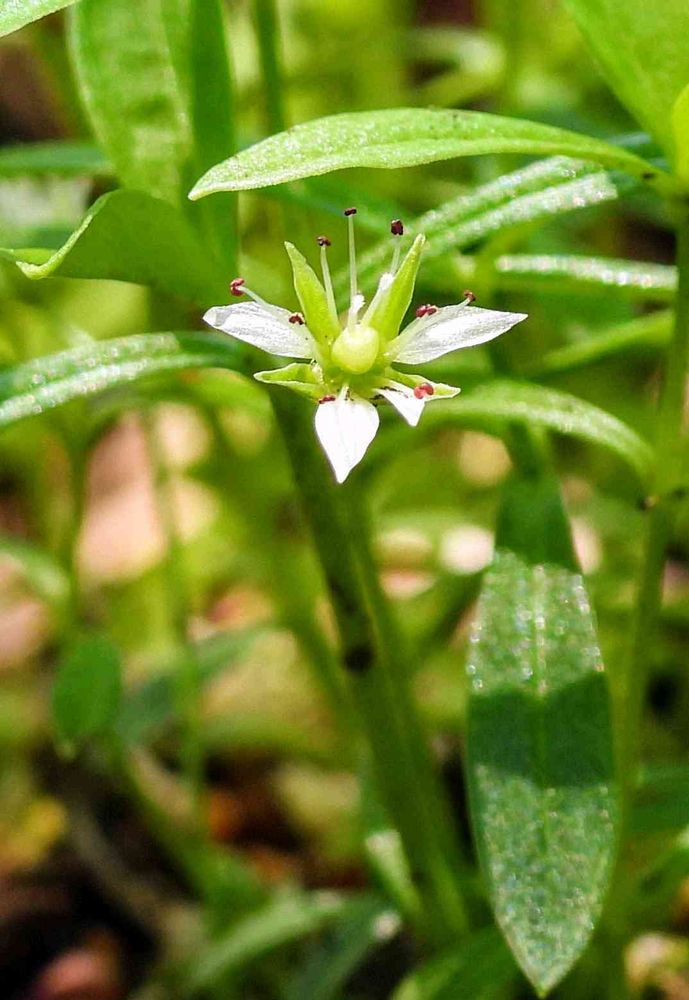 小さな可愛いヒナワチガイソウ(雛輪違草)の花、雄蕊の赤い葯が可愛いです♡🌿