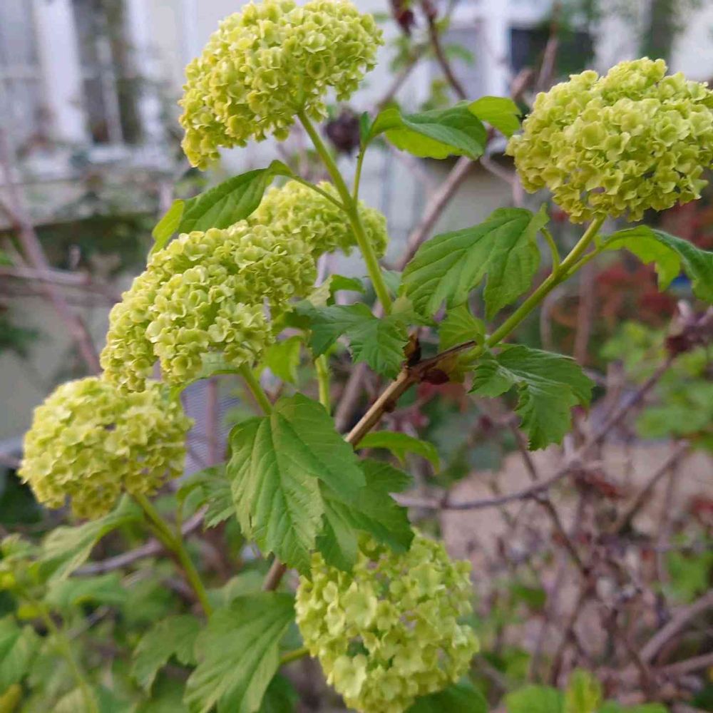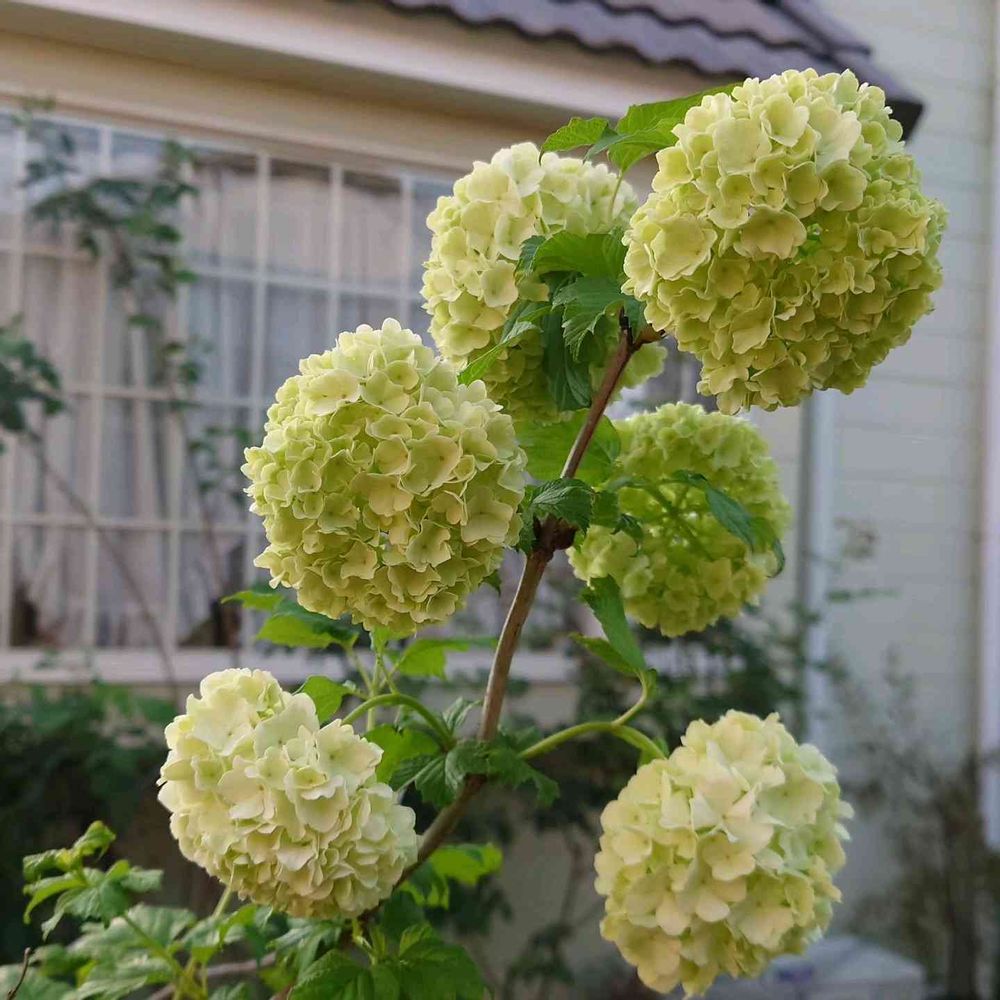 ビバーナムはオオデマリと違って花に茎がある〜やっぱり咲き始めが可愛いな🟢