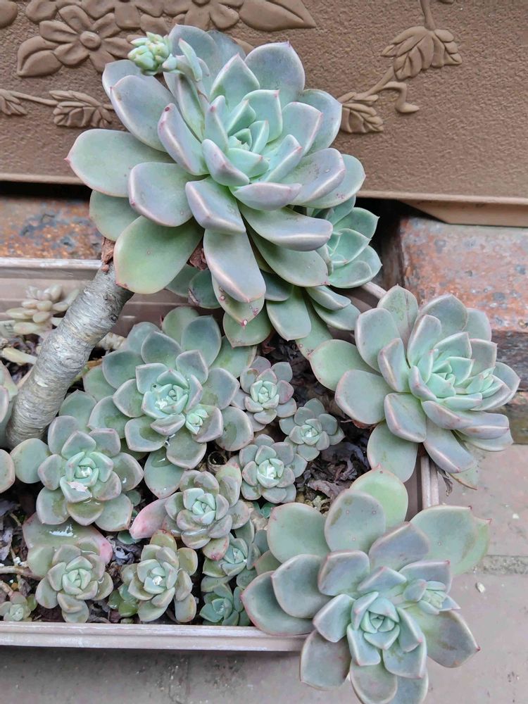 日陰でオブジェ化している グラプトベリア・ピンクプリティさん😻💚🩵🤍