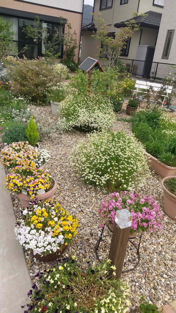 ビオラはそろそろ終わり。カモミールはモリモリ最盛期。ホメリアも見頃。夏の花たちも大きくなって来ています。🤗🐶✌️