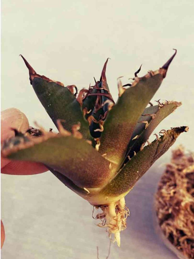 アガベシーザーの成長スイッチが入りました。2枚目の写真が5ヶ月前の発根管理していたものです。