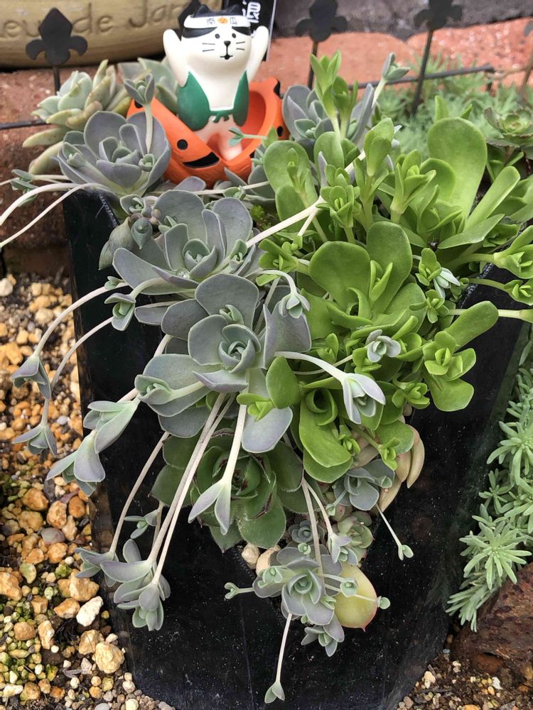 1️⃣プラ鉢をV形カットし子持ち&玄海岩蓮華などを詰めてみたらモリモリでランナーも出てきたね💚