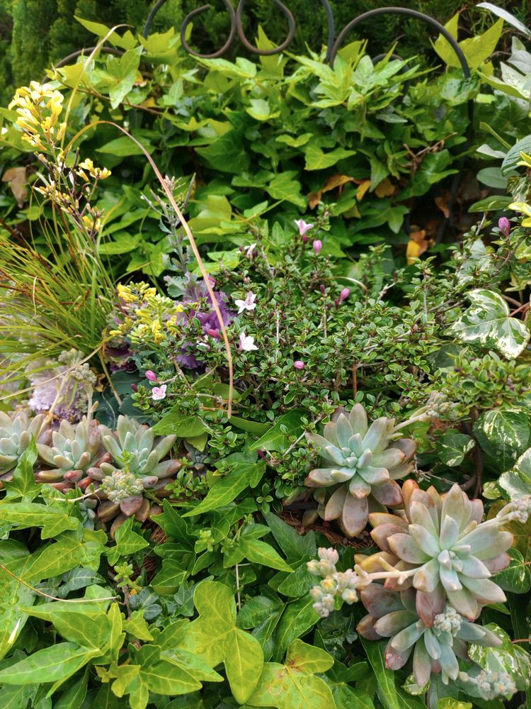 冬に秀麗やハクチョウゲを入れたハンギングバスケットがモリモリになっています😊