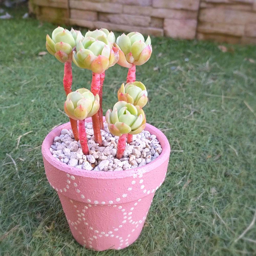 茎がピンクっぽくて鉢のピンクと合ってるね😆💓使ってくれてるの嬉しい〜🙌ありがとう⁽⁽٩(๑˃̶͈̀ ᗨ ˂̶͈́)۶⁾⁾