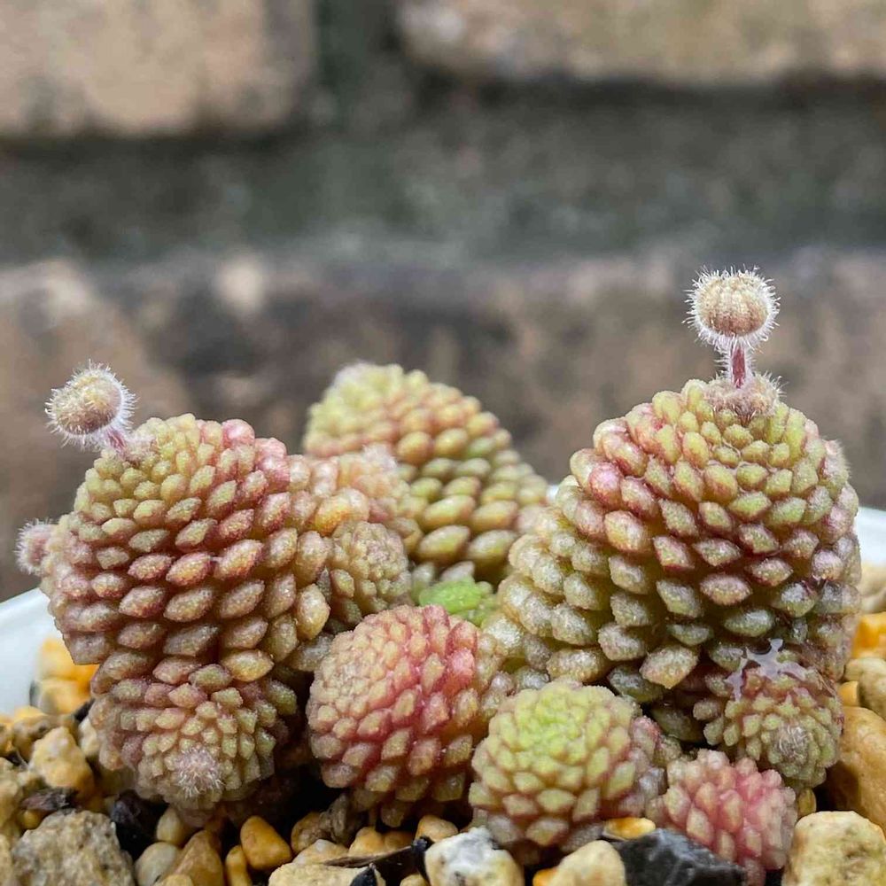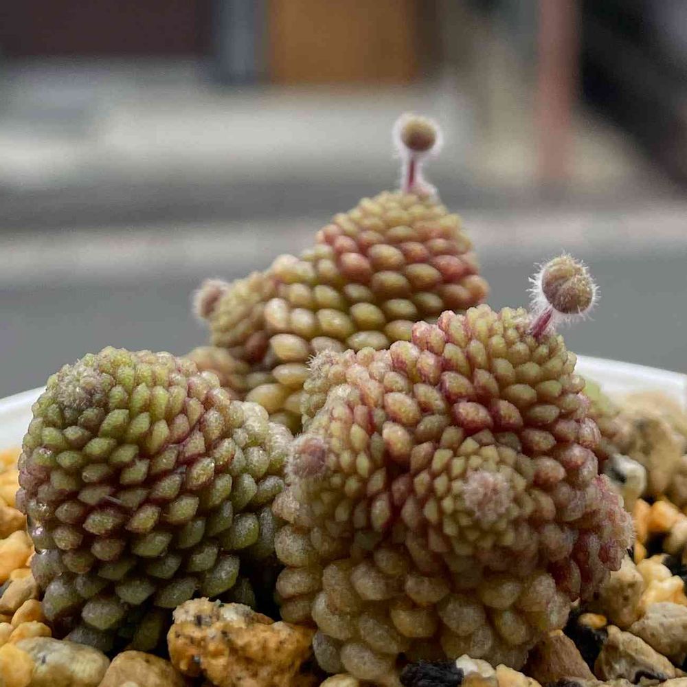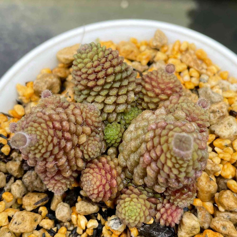 多肉図鑑で見てズキンと、トリコになったのですが、なかなか販売されて無くて💦出会った時は、緑色でちっちゃい子でしたが、今は、紅葉なのか傷んでいるのか不安でしたが試行錯誤しながら、元気にここまで育ちました♡⃛ ̖́-