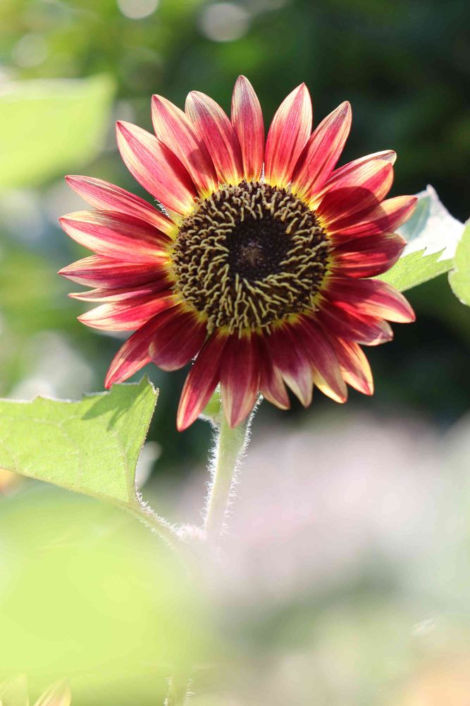 夕方の柔らかい光と花と花の間から超望遠で狙いました。なんとかひまわりが欠けずに撮れました。かなり強引に撮りました。