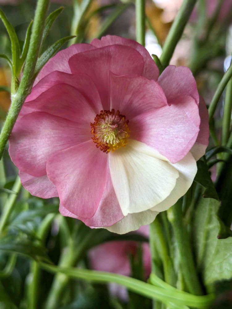 まさかのこのヘラちゃん😍ハリオス色の黄色い茎が2本伸びキメラとなりました。姿も十分楽しめましたが、発見してしまいました。ピンクの枝からキメラの花が咲きました。すごく嬉しくて思わずpicびっくりしてしまいました。ハリオス色が咲くだけでなくピンクヘラの茎からキメラ😍このヘラちゃんどこまで楽しませてくれるのかしら?