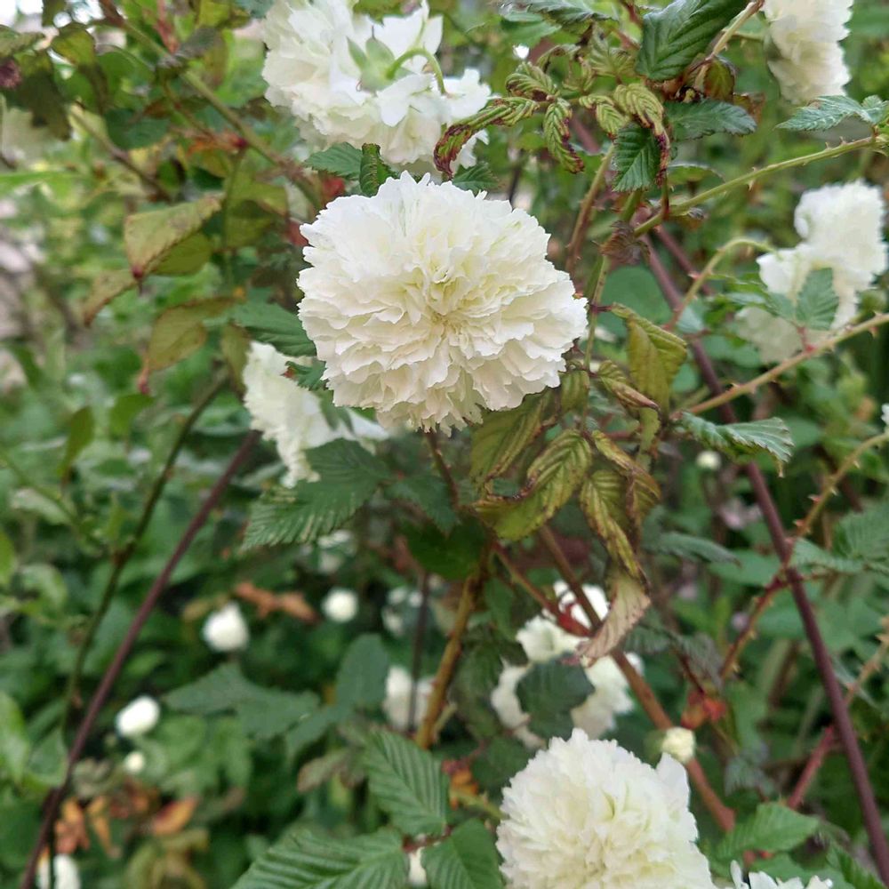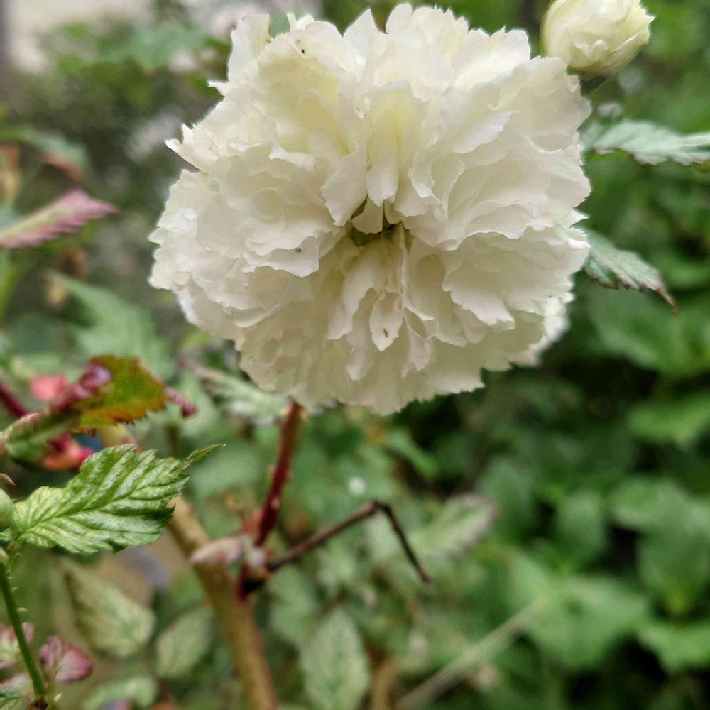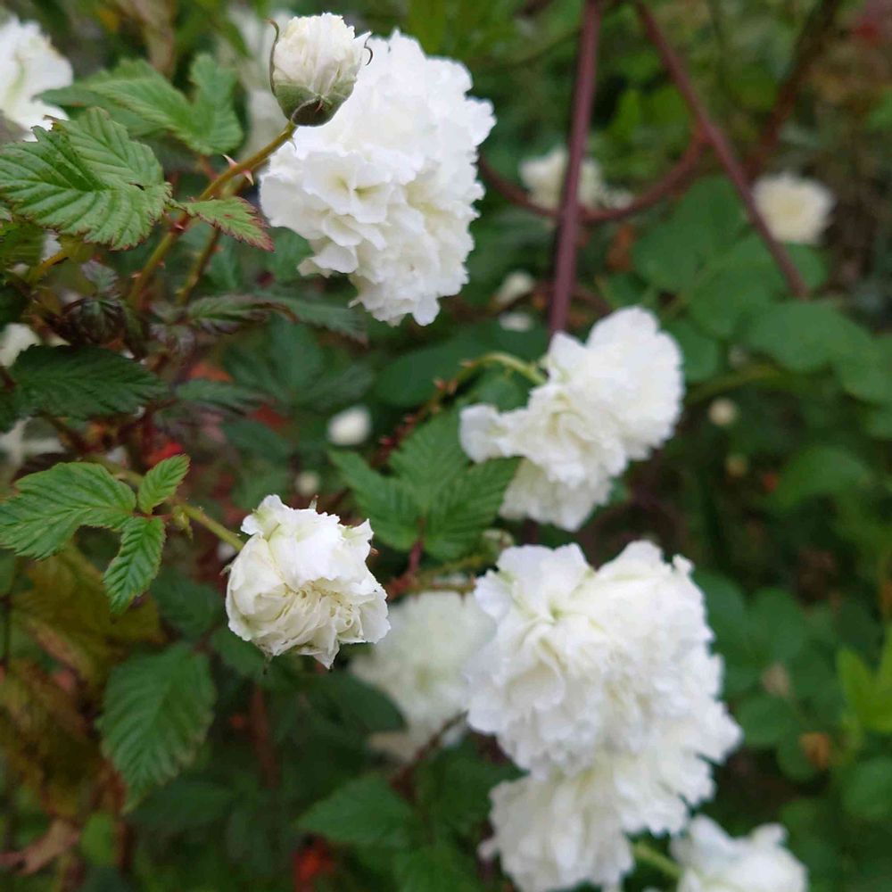 真っ白で、名前にバラと付いてるけど、キイチゴの仲間、、、真っ白で沢山の花びらが素敵なんですよ〜🤍🤍🤍✨✨
