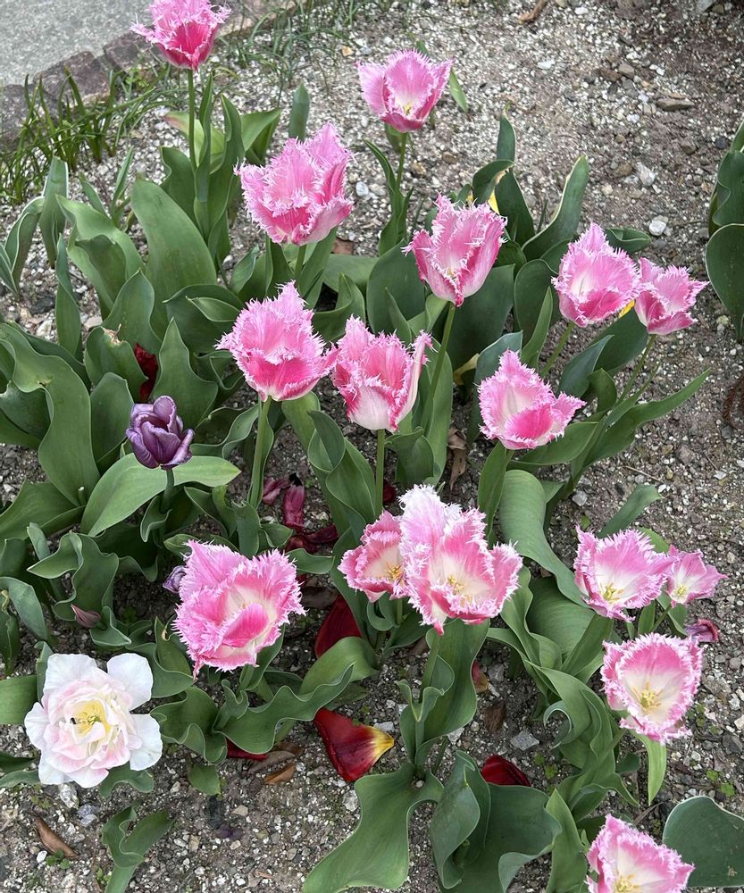 ・もうチューリップも終わりに近づいてるけど最後にこのピンクのチューリップが予想外にたくさん咲いて嬉しい誤算でした🌷