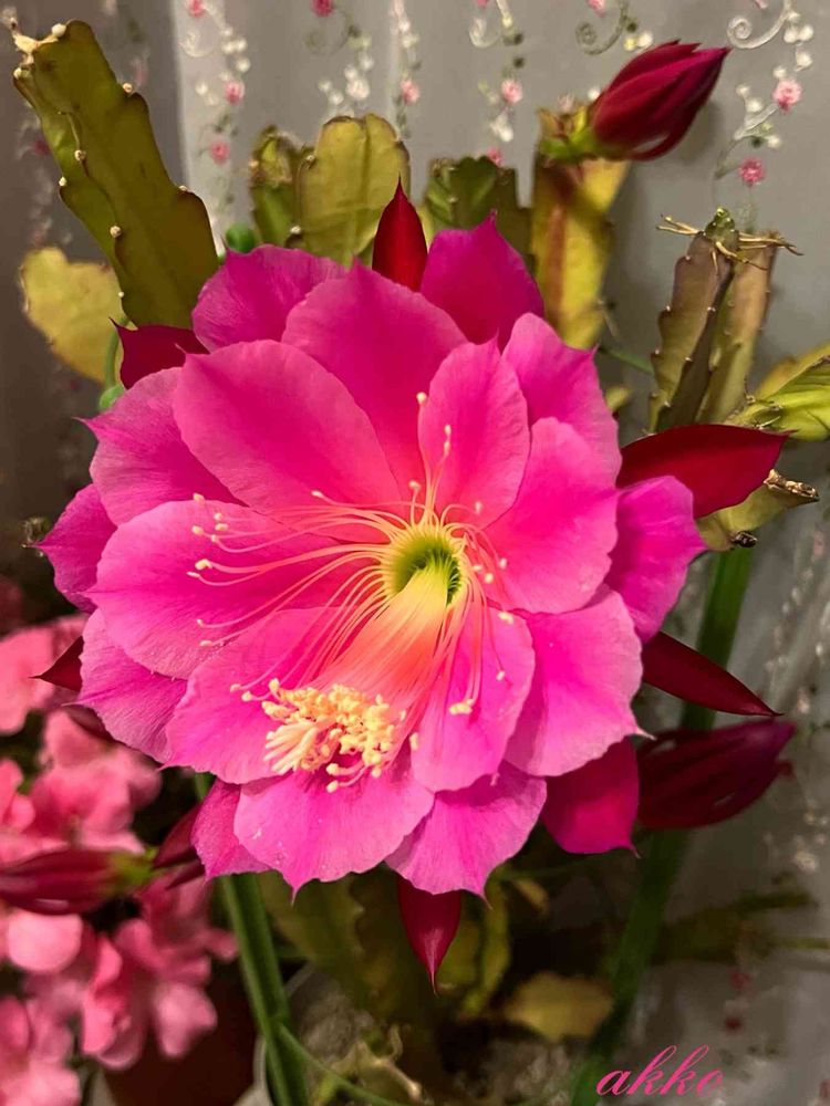 孔雀サボテン 紫勲 の花が咲いてきました🩷
