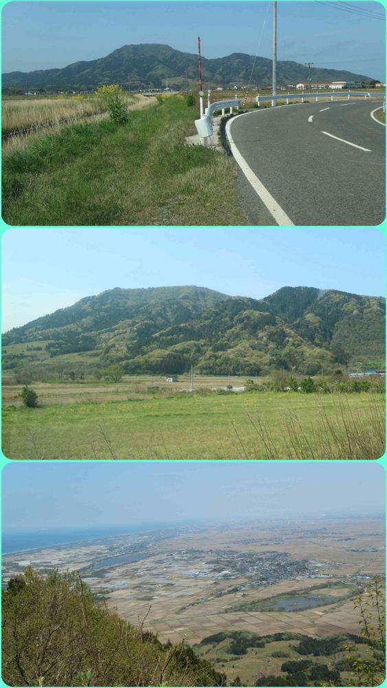 ⬇️観音堂からの眺望です。低山藪山の角田山、唯一ビューポイントです。左から日本海、ラムサール湿地の佐潟、そして桜と菜の花で賑わった上堰潟です。右の奥が新潟の市街地、ビッグスワンが目立ちます。左の海の先に鳥海山があるのですが、よほど条件が揃わないと見えません。海に浮かぶ鳥海山、ステキですヨ。