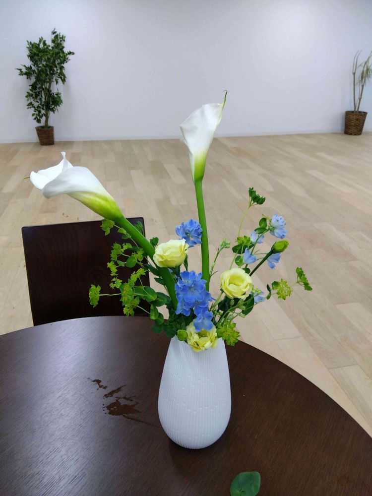 この時期はブルー系の爽やかな色のお花が似合いますね。カラーも爽やかで好きです。爽やかな気候のこの時期、楽しみたいですね😊