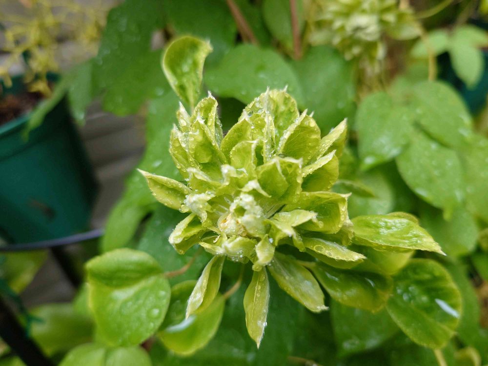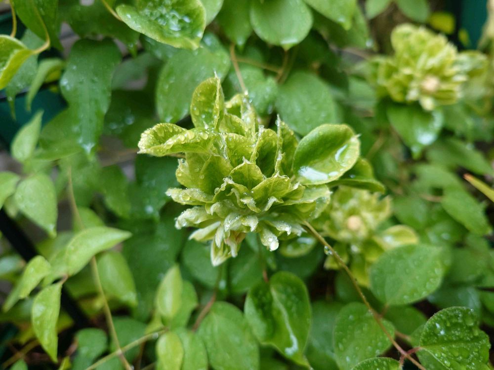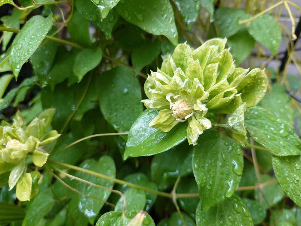 他のクレマチスはまだ咲いてませんが、グリーンパッションはこんな感じ☺