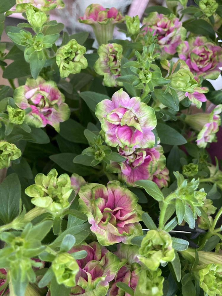 花屋の店先で出会った「八重咲きペチュニア 湘南プチヴェルデ」。