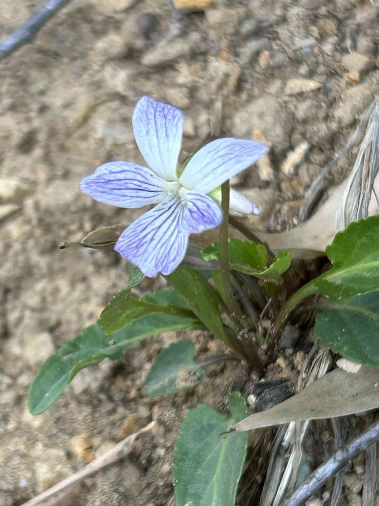 先日歩いたお山、アケボノスミレやアカネスミレをいっぱい見た後、日陰の道歩いて🅿️へ行く途中、アメリカ・スミレサイシン・プリケアナが群生でしたよ。