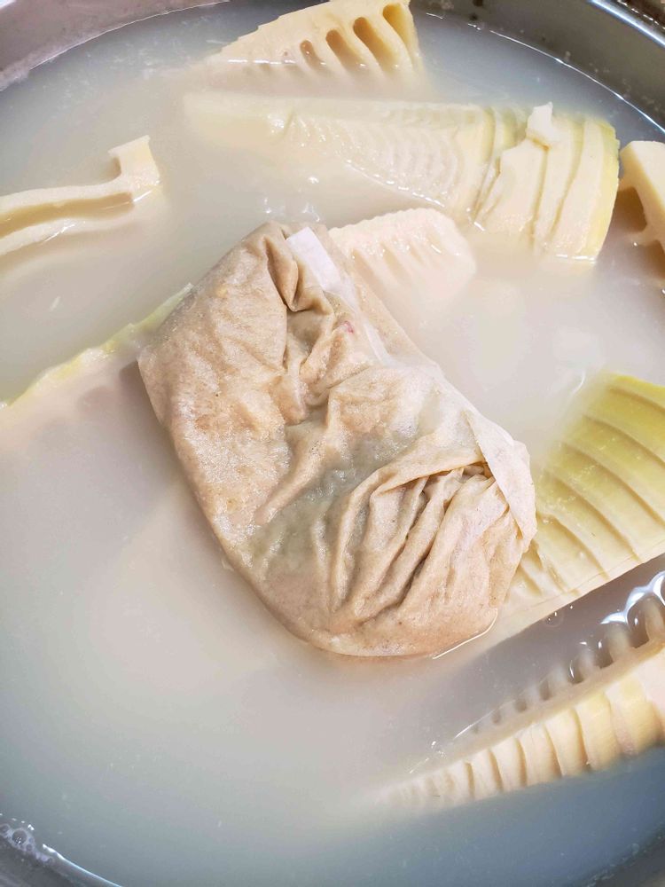 茹でる時は、糠をだしパックの袋に入れるとお湯を捨てるとき楽チンです。