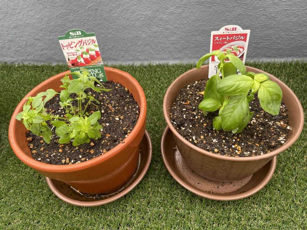S&Bトッピングバジル、スイートバジルの苗は、7号鉢に植えてみました。