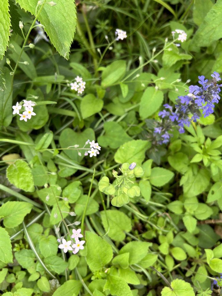 ピンクの忘れな草は、もうだいぶん咲きすすんで