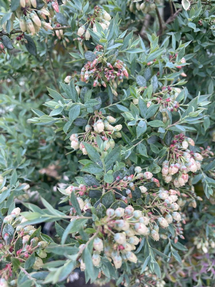 常緑ブルーベリーが開花してきました、蕾の期間が長いため長期に渡って美しい姿を見せてくれます。