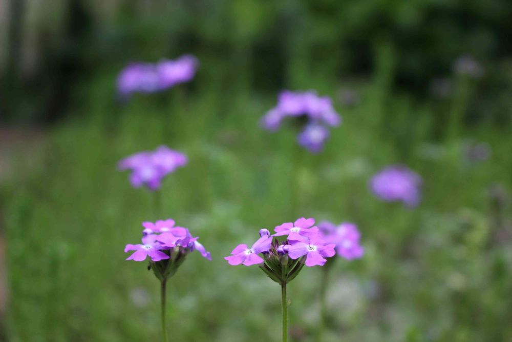 去年の種がこぼれたのでしょうか、お庭のあちこちに可愛い紫色の小花が咲いています•*¨*•.¸¸♬︎
