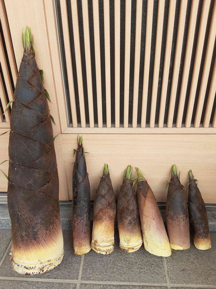 かさ子地蔵さんのように、玄関前に掘りたてのタケノコが届いていました⛰️