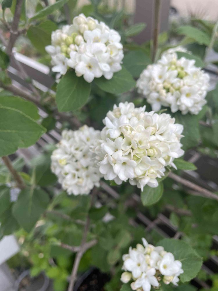 南の庭にいたスノーボールもついに追いやられ、北側に来たけれど花つき良し(ㅅˊᵕˋ*)♡