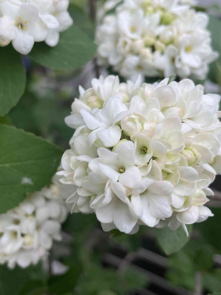 スノーボールはオオデマリやオーロラみたいに枝が太くしっかりしてないから、ふわふわ咲く感じが好きなんだけど、ちょっと枝が乱れてる〜😂