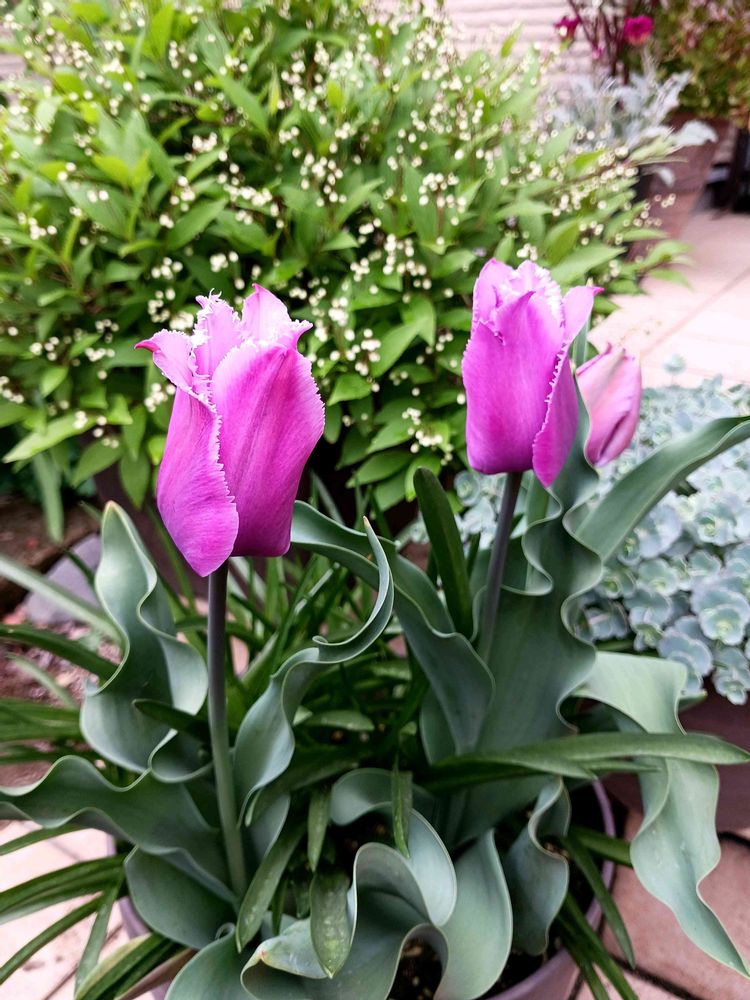 白覆輪のボルドーの花が咲くハズ、と言っていましたが、勘違いだったようで。この球根植えたことも記憶薄…大丈夫か?そしてあのボルドーのチューリップはどこ行っちゃったのかな。🌠になったのかな。