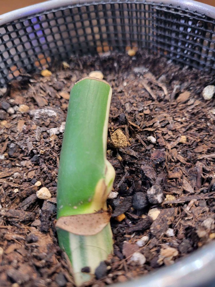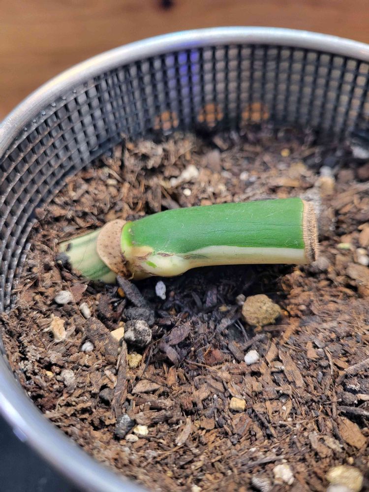 モンステラホワイトタイガー茎伏せ。まもなく新芽が出そう🎵