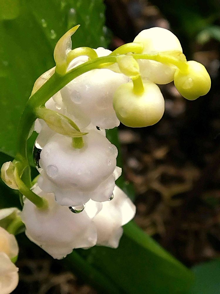 雨粒うけたスズランさん達の愛らしさにキュンとしました💚