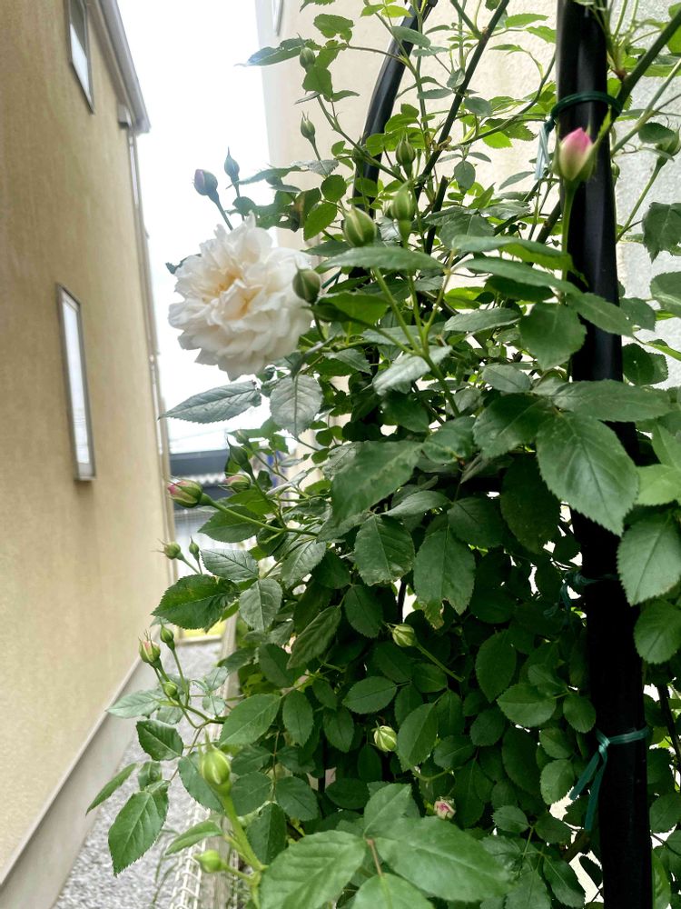 昨春、自分の中ではバッサリ強剪定したつるバラアイスバーグ。蕾がたくさん付いて安心しました😭バラって本当に美しくて強いな✨