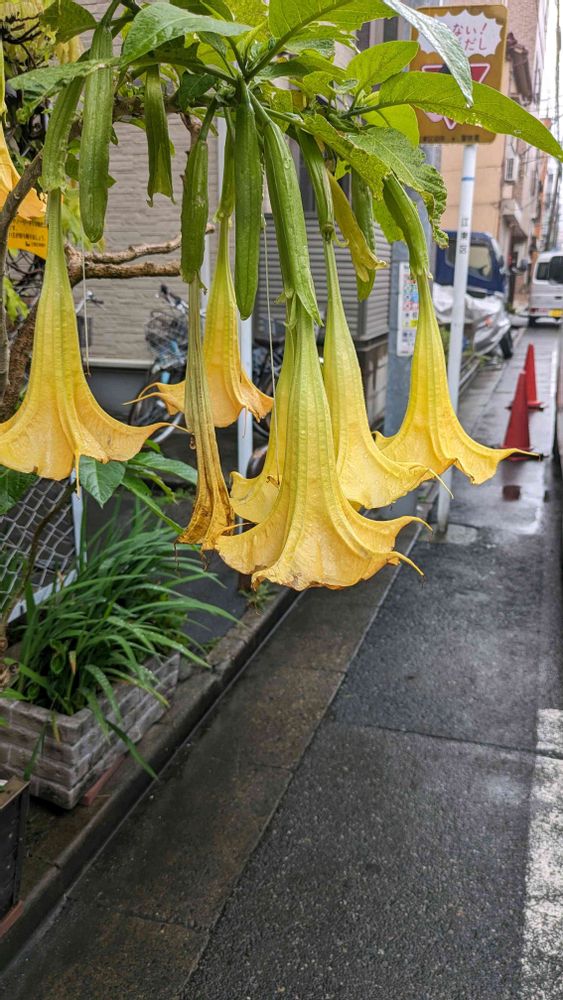 雨☔近所でエンジェルストランペットが咲いてます🌸