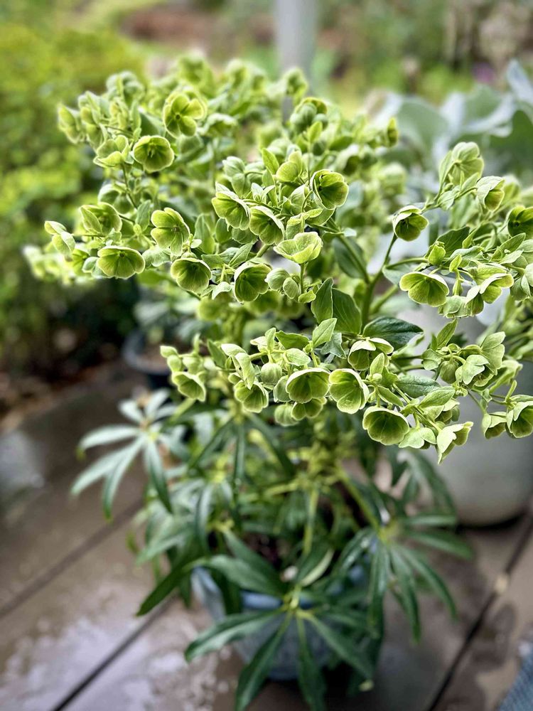 クリスマスローズ フェチダス☘️花茎を切り落とさなきゃいけない時期ですが、いつもギリギリまでやらない。大きいので花がないと極端に地味になっちゃって😑あと1週間は頑張ってもらおうかな。笑