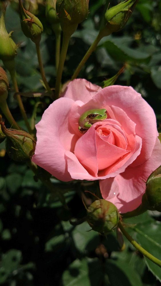 お花の中にいれば 自然と虫が飛んできますね🐸賢いです🤭