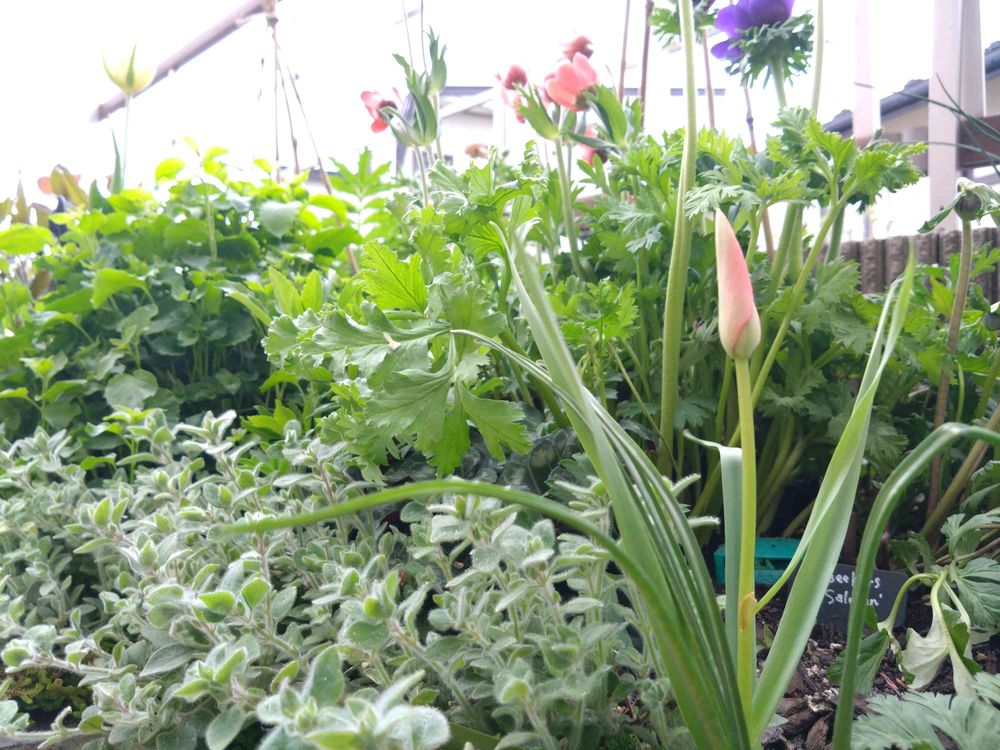 さて、アネモネが花盛りを迎えています❤イメージを遥かにうわまわる🦒チューリップよりもラックスよりもクリスマスローズよりも、なんなら花壇で1番高いです!