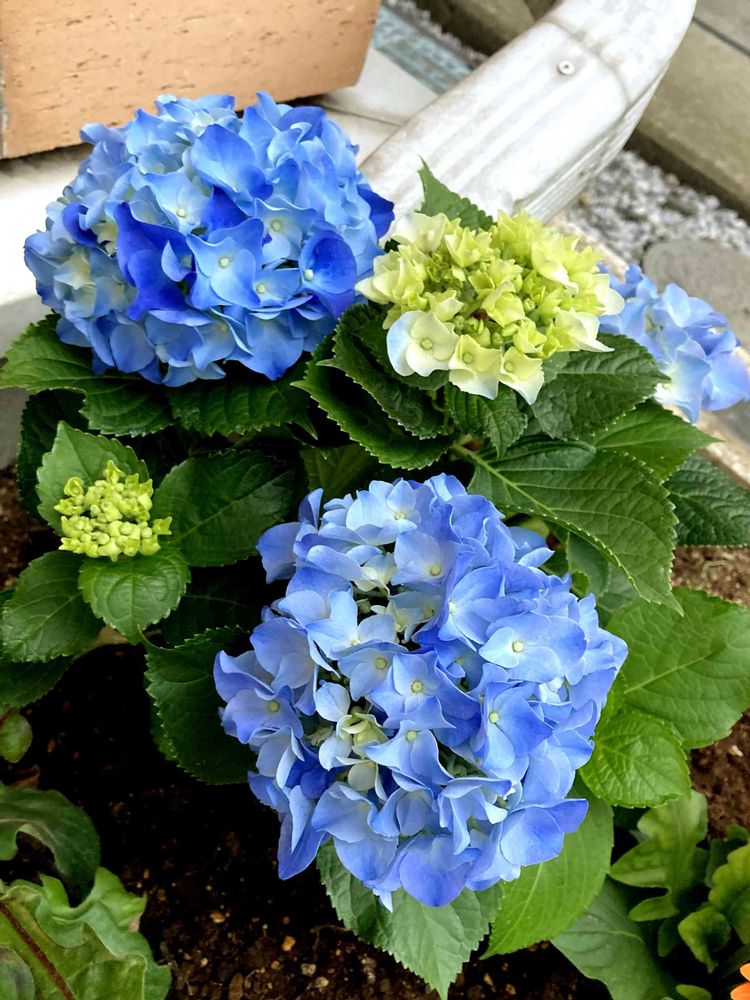 4枚目の青い紫陽花は地植えされていましたが、多分鉢植えを買って植え替えたのではないでしょうか