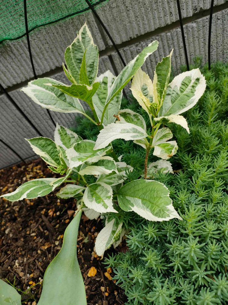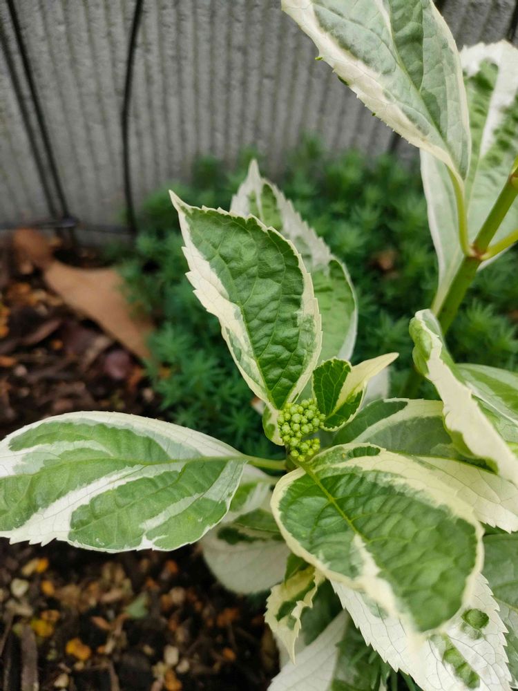 二年目の斑入りの紫陽花に蕾が付いてたからうれしぃぃぃ🥹