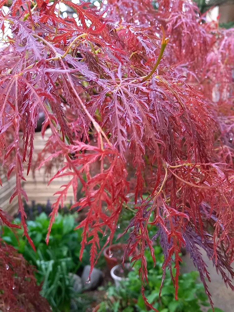 4️⃣雨で濡れ暮そる紅垂れモミジ