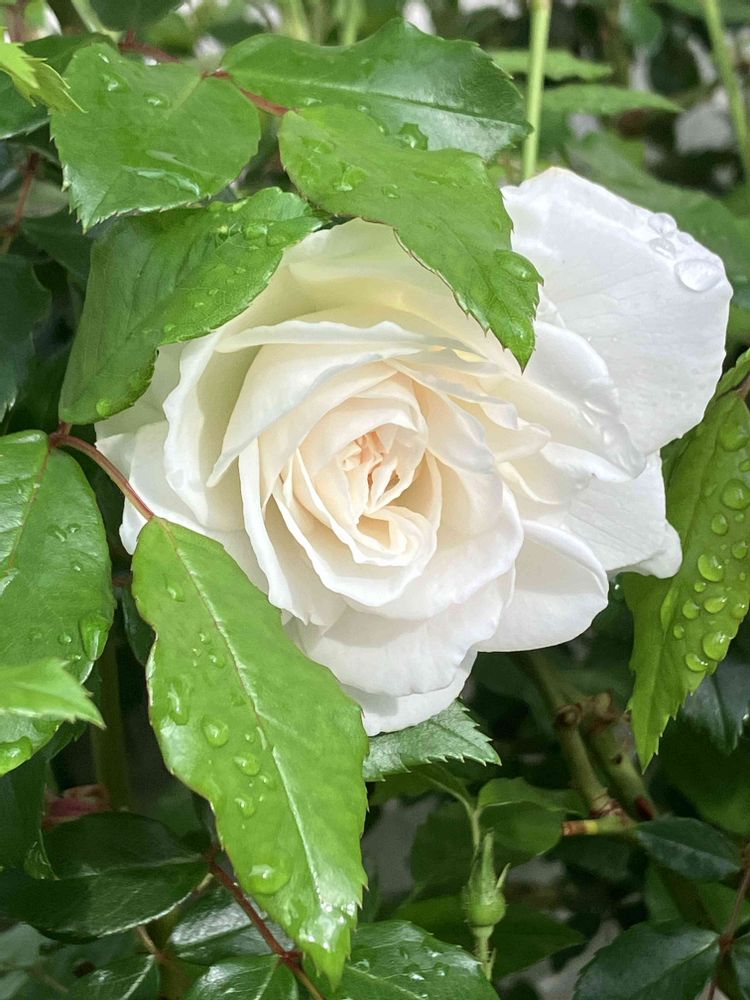 今朝のバラ🌹アイスバーグ、ルイ14世🌿🦋