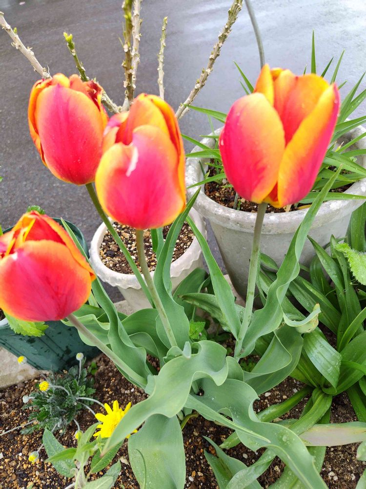 オレンジと黄色の2色咲きのチューリップ🌷ですね😄